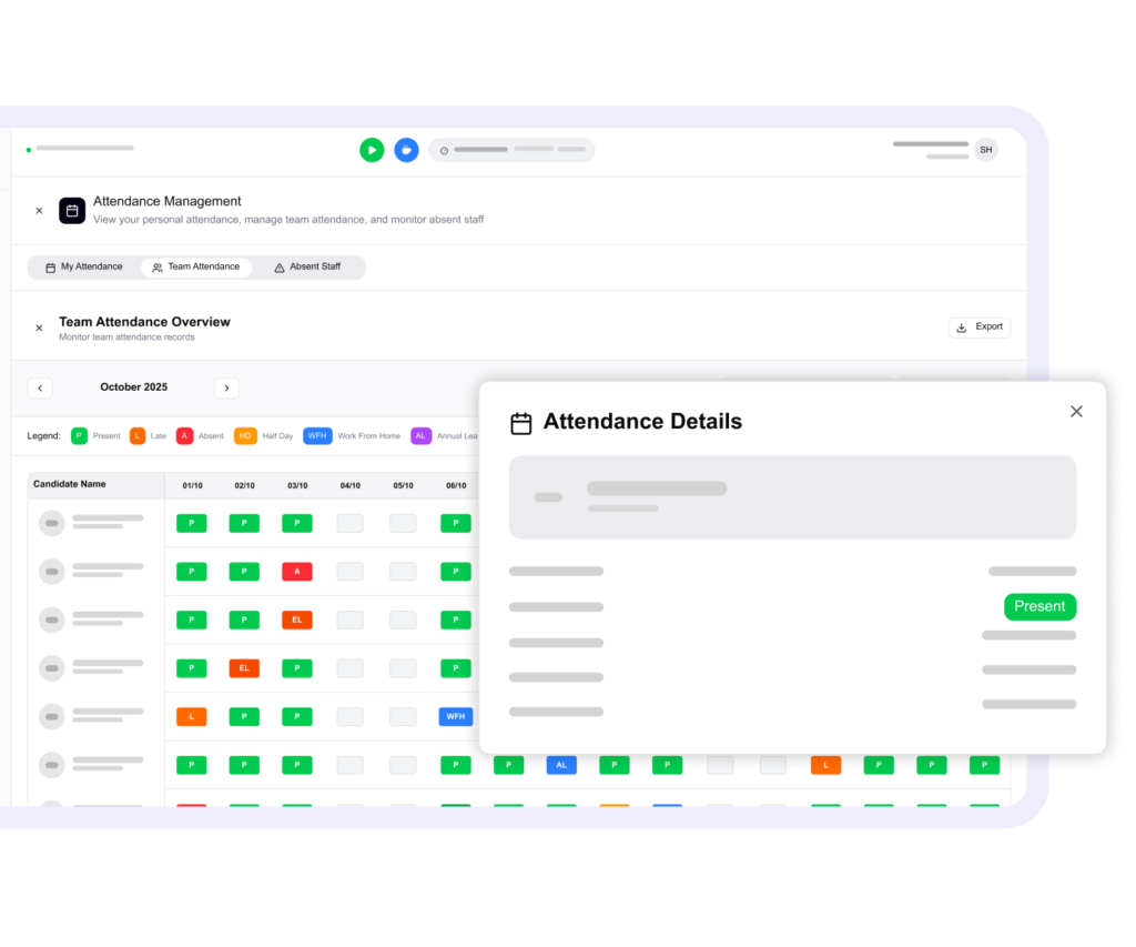 Setup is quick and user-friendly. Most companies are up and running within 1 to 2 business days. We provide step-by-step onboarding support, including importing employee data, configuring your organization’s attendance rules, setting up teams, and training your admins on using the system. If needed, we can also schedule a demo session to walk you through the setup live.
