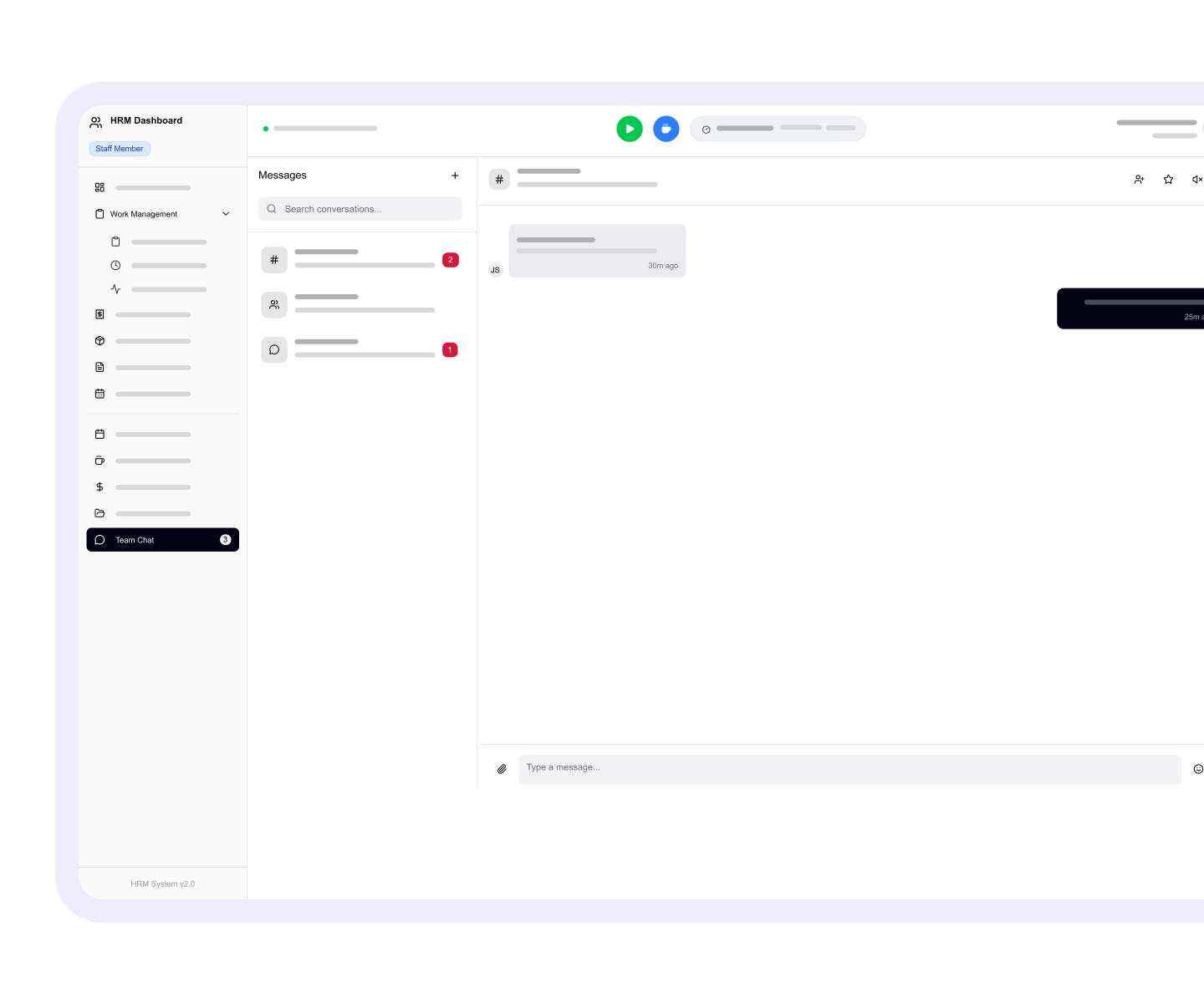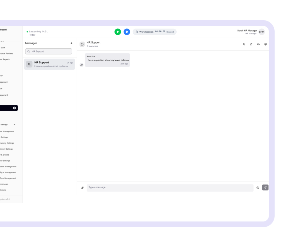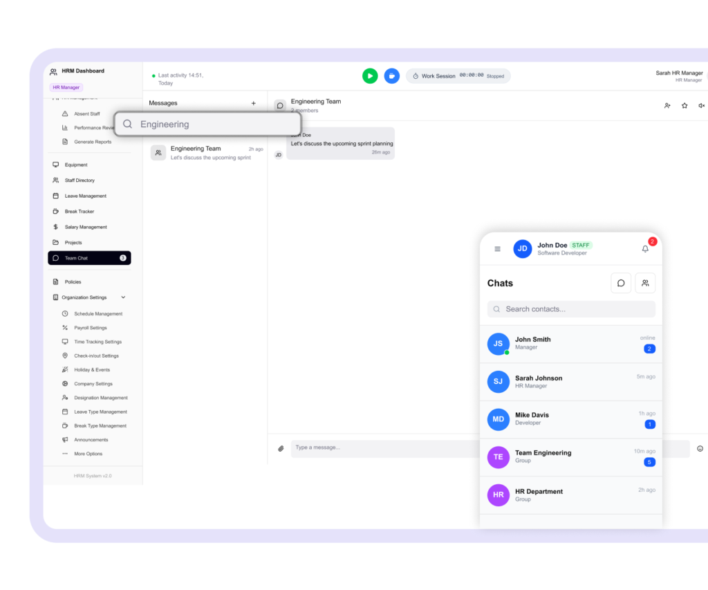 Real-time messaging, file sharing, and collaboration — all within your HR ecosystem.