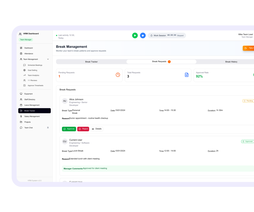- Custom approval workflows for managers or HR