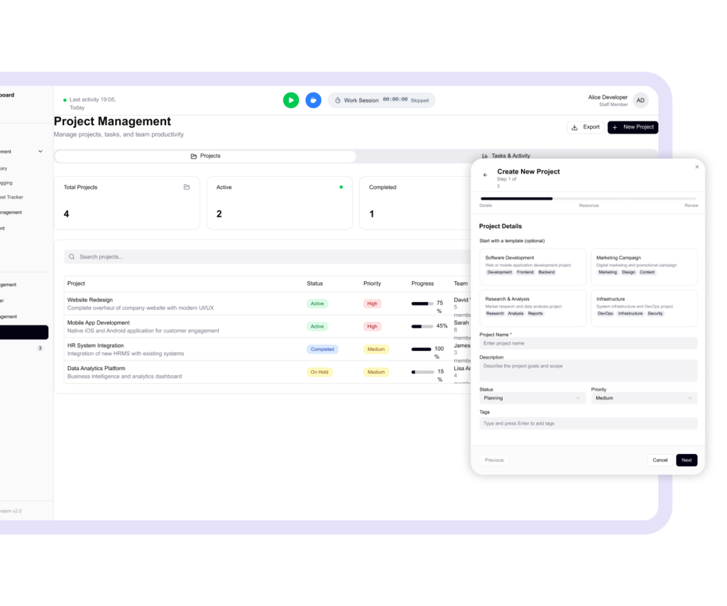 Absolutely. OXhrm is optimized for remote and hybrid workforces. Employees can clock in from approved IPs or geo-locations, and you can track their activity levels, app usage, and idle time — all while respecting privacy and compliance. The dashboard offers real-time visibility into who’s working, when, and how productively, no matter where your team is located.